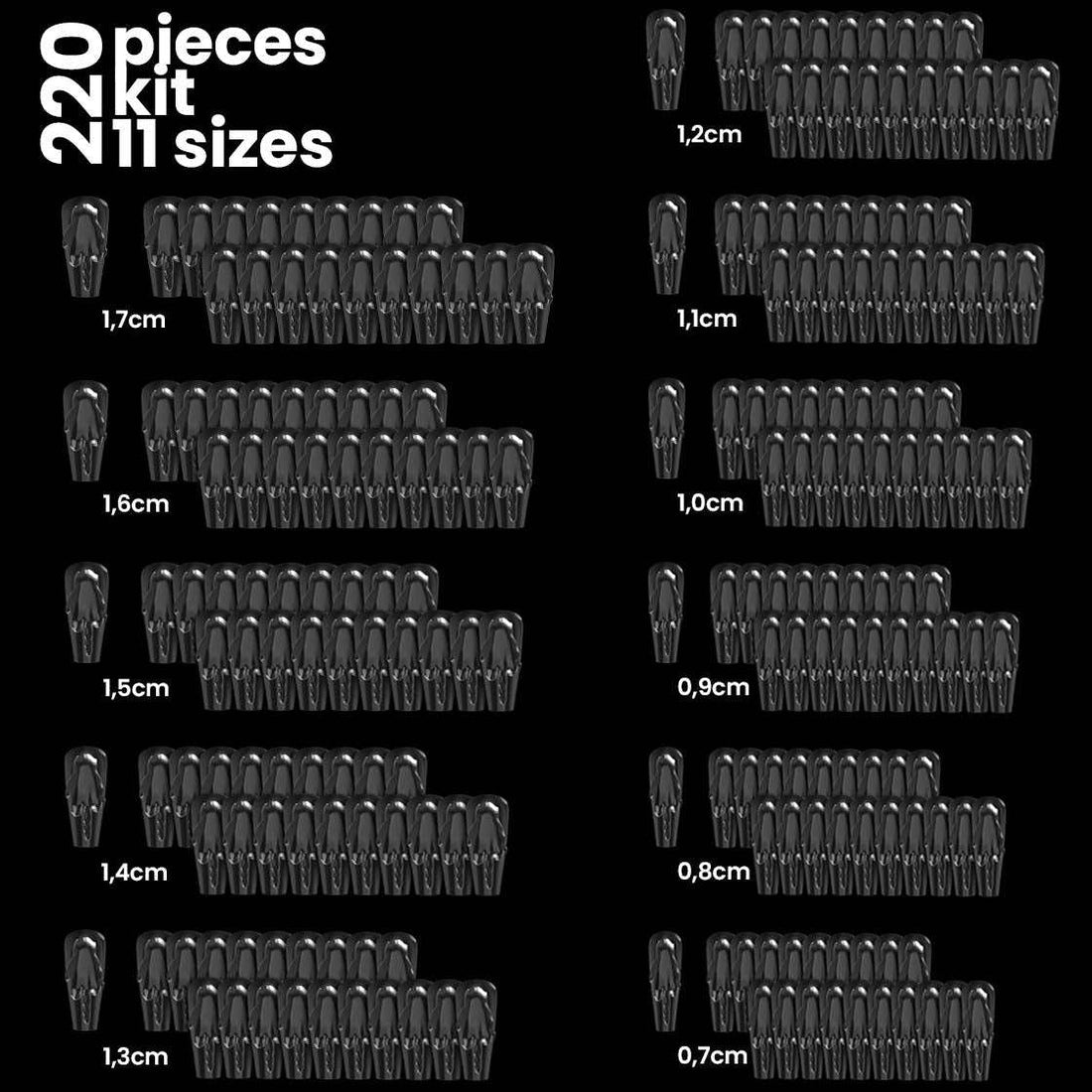 ¬11 sizes (0,7cm to 1,7cm)